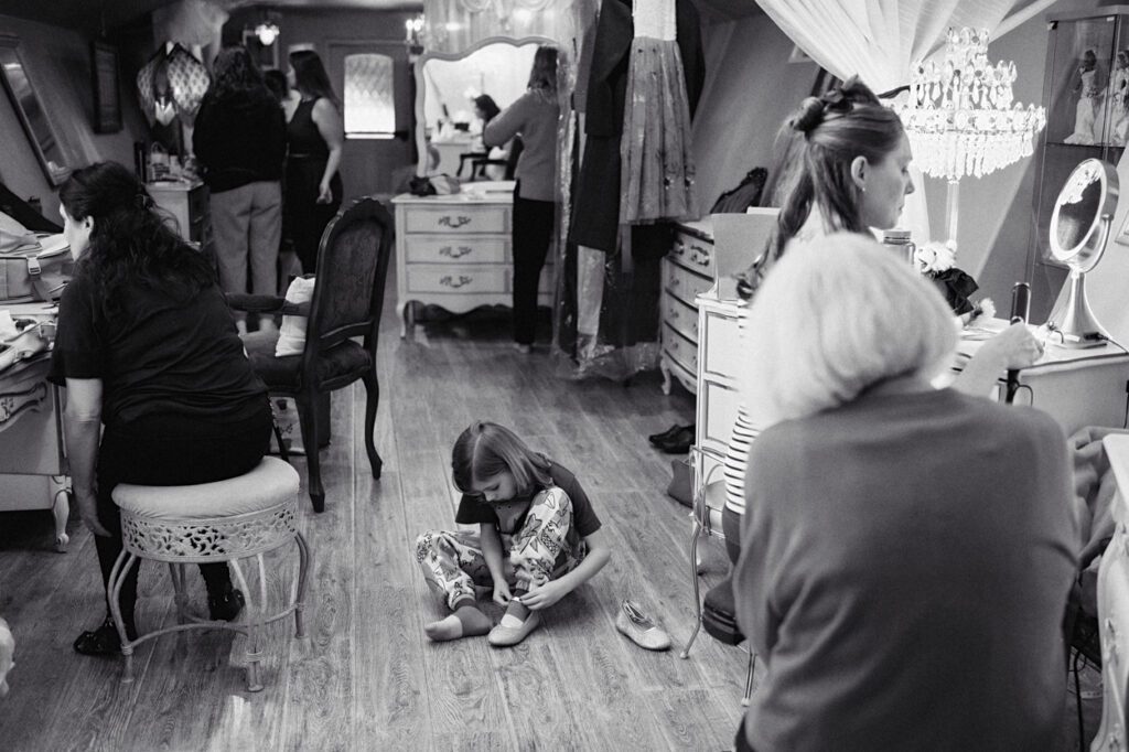 I started the day like I do most weddings, beginning with the bride getting ready photos and then moving to the groom. The bridal suite was absolutely bustling with energy. The bride had all her favorite people there, and she wanted it to feel reminiscent of when they all lived together sharing one bathroom mirror. Mission accomplished. There was laughter, chaos, and so much love packed into that space.