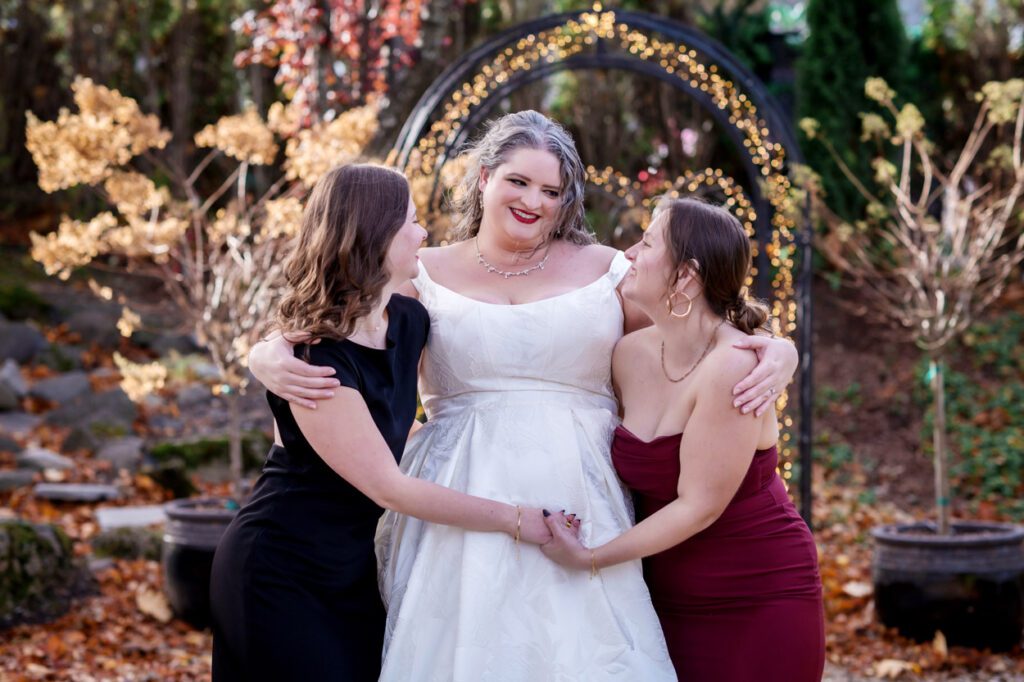 This Troutdale House Weddiversary Celebration had a few fun surprises. The city recently cleared out some trees behind the venue, revealing a gorgeous new river view right in the backyard. They’re even building a little riverside park and walkway, which will make this already charming venue even more magical. Add in a couple who have been together for twenty years, a bride in a showstopping cloud-like gown, and a day full of laughter and games, and it made for such a joyful celebration.