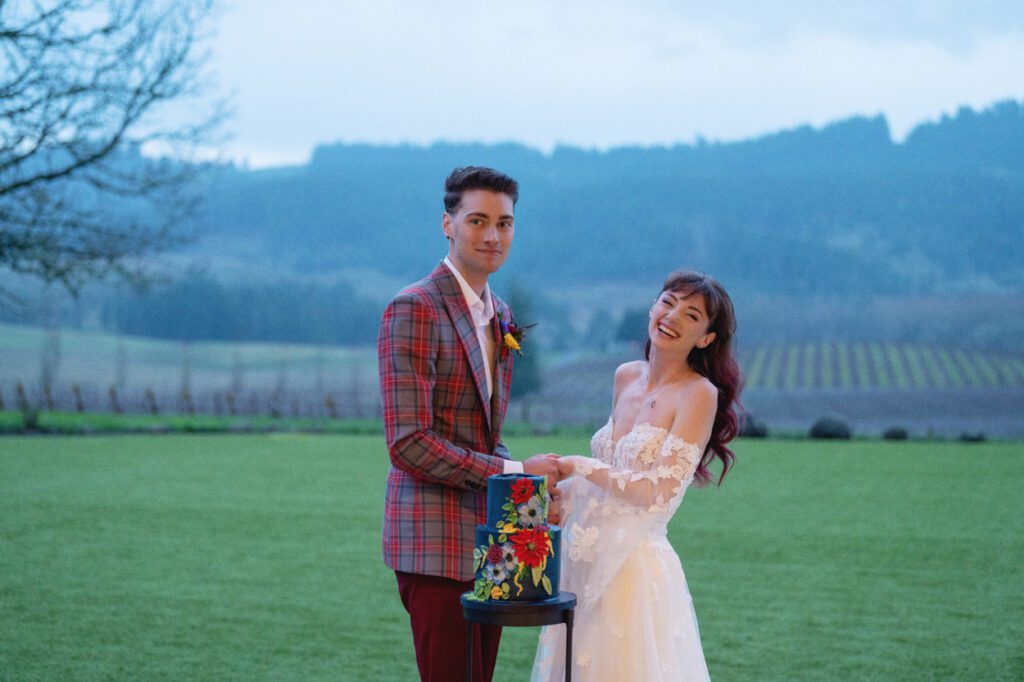 Cascadia Kitchen designed the most beautiful cake with hand-painted floral details that matched the overall color palette perfectly. It looked stunning on the indoor bar and even more magical once we moved it outside to catch the last light of the day.